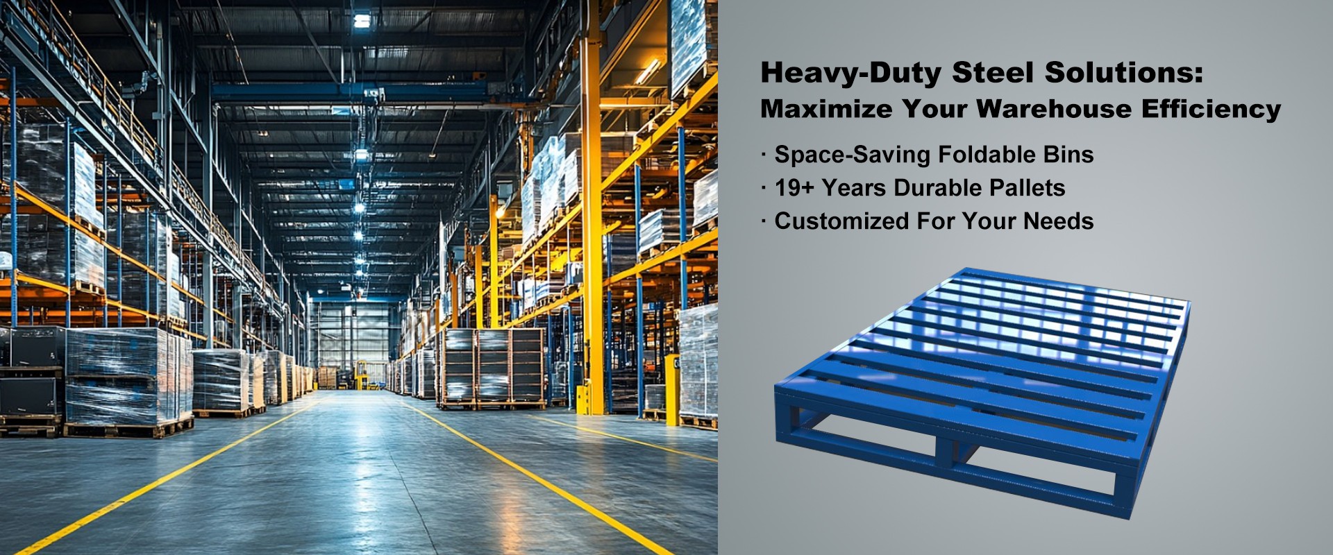 We produce foldable metal containers, steel pallets & mesh boxes, suitable for efficient circulation of goods in warehousing & logistics.